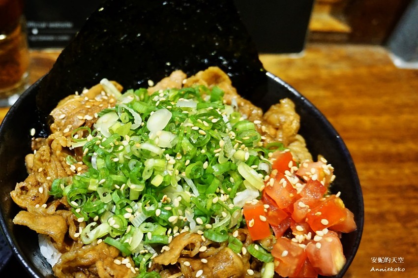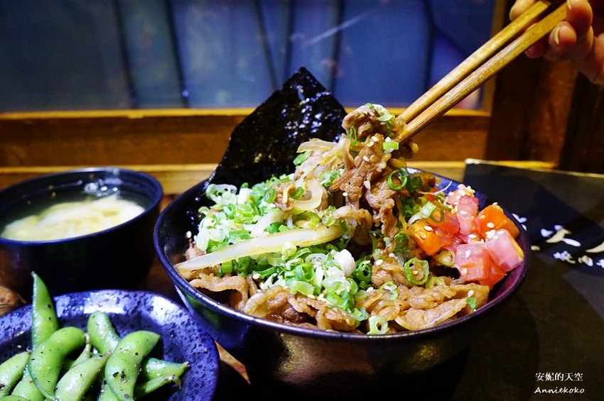 烤得香噴噴的牛五花將碗鋪得滿滿的,幾乎快要感覺不到飯的存在,鮮脆的青蔥上面還有芝麻,增加了香氣,一旁的牛番茄讓整碗丼飯色澤變得豐富外,也增加了整體丼飯的口感。