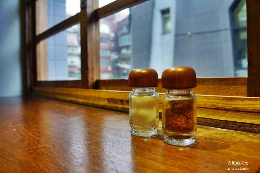 另外二樓還有四張雙人桌,空間雖小,但店員依舊是將桌面整裡的條理有序,面紙、調味罐、餐具盒都有一致性的角度,莫名的也很有美感呢。