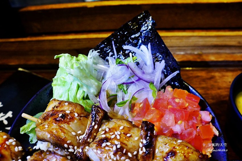 這款雞肉串受到我們一行人的熱烈好評,Q嫩的雞腿肉果然沒讓我們失望,一整碗裡的繽紛配菜也很加分,不單單只有肉,還有多樣配菜讓整體口感更加豐富。
