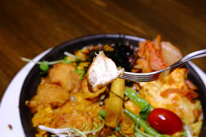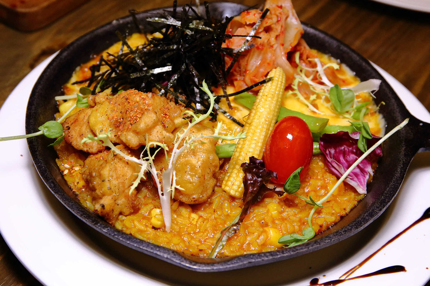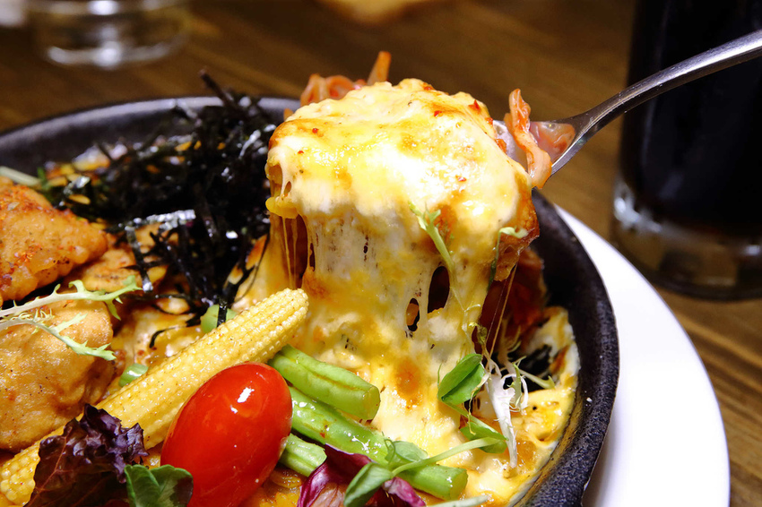 烤飯上滿滿的起司牽絲,搭配上廚師特調韓式辣醬,又香又辣好滋味的口感,讓人一口接一口
