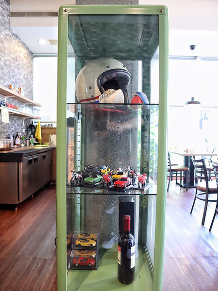 其中兩個櫃子有著料理相關書籍以及店家的私人收藏呢。