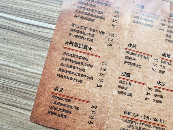◖ 其他 ◗ 免服務費。低消一個主菜。