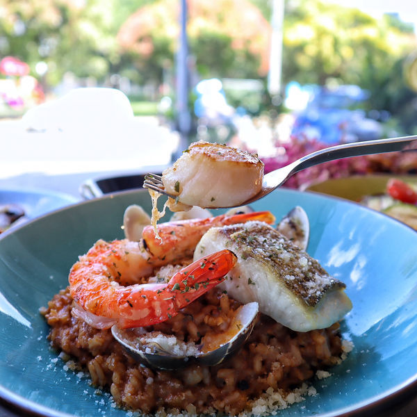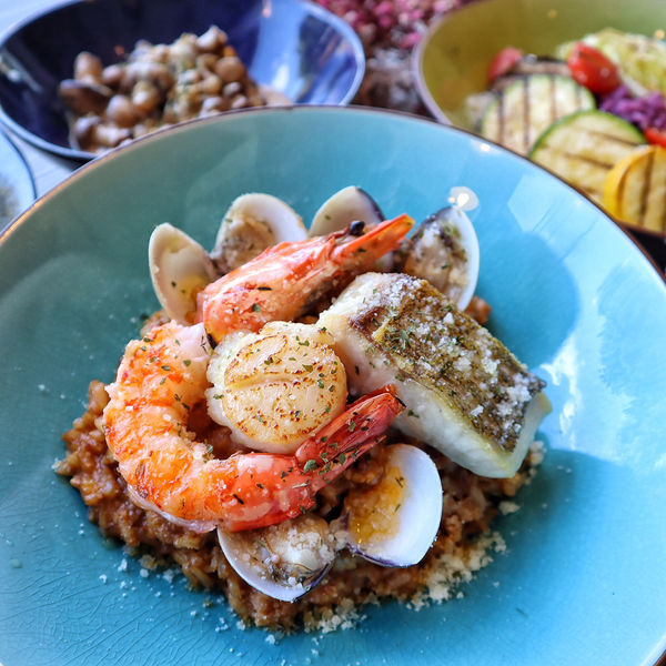 燉飯的部分是以蝦、魚骨取下後熬成高湯煮成的,