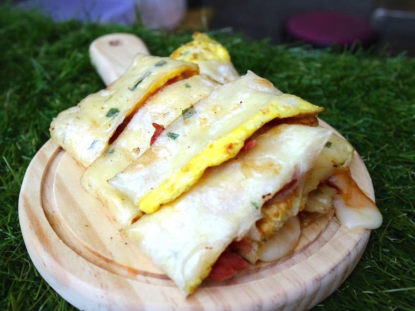 以為只有這樣嗎?這份《金針培根蛋餅》裏頭還有滿滿的起司!