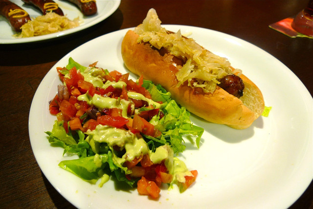 濃濃的香料味配上德式酸菜讓這個香腸堡跟平常吃的熱狗堡完全的不同!