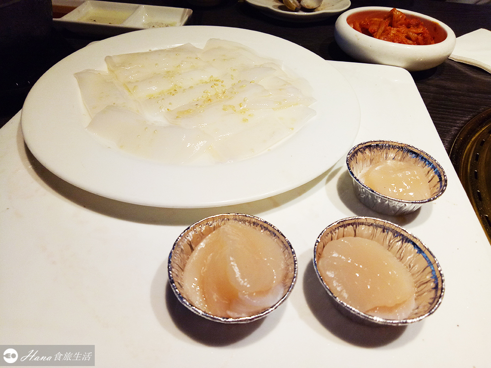 新鮮軟絲較一般燒肉店厚,稍微烤過就可以聞到香氣,