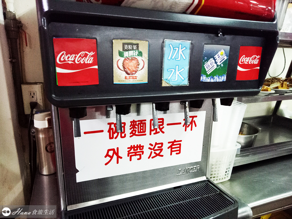 有可樂、美粒果、雪碧可以選,吃口味較重的牛肉麵再一邊喝汽水,