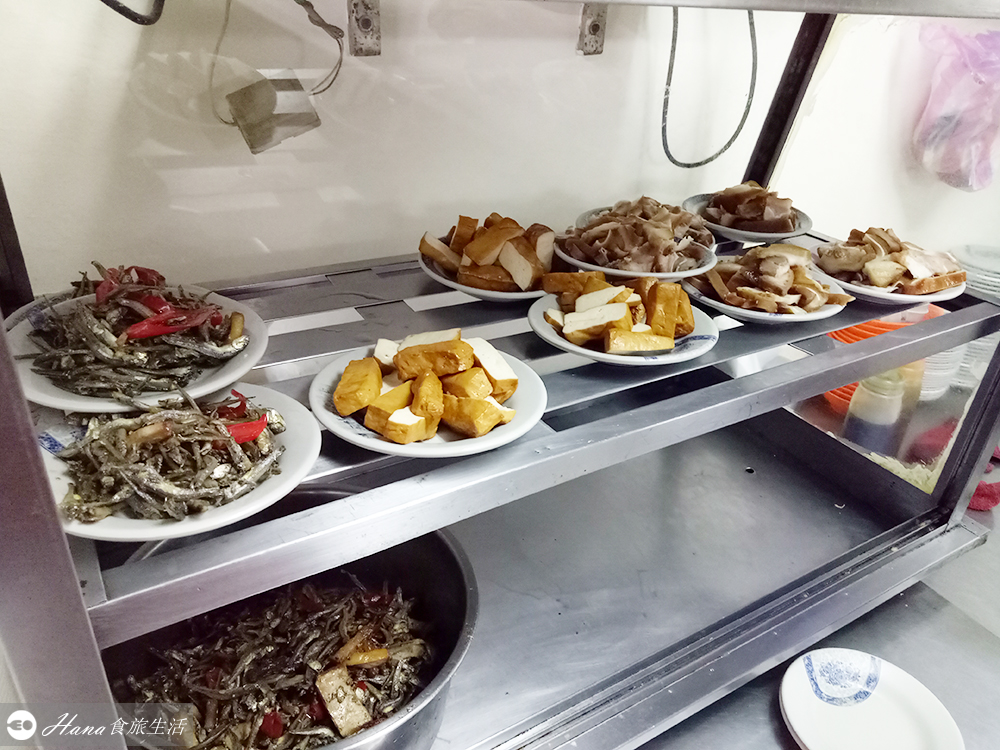 ▲外面擺放許多小菜,有小魚乾、豆干、豬頭皮,