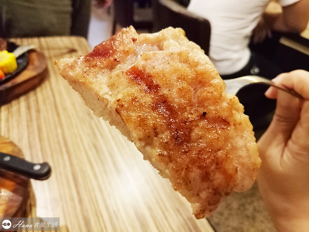 ▲豬排表面煎至金黃色,帶點微焦香氣,入口非常嫩,比牛排還好咬,