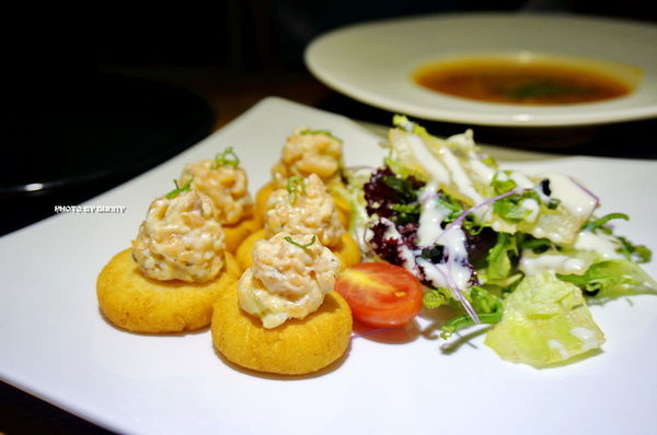 同為套餐前菜的馬鈴薯燻鮭魚,