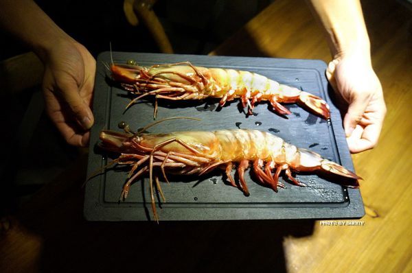 點完餐後,服務人員會先拿出烹調前手臂蝦,