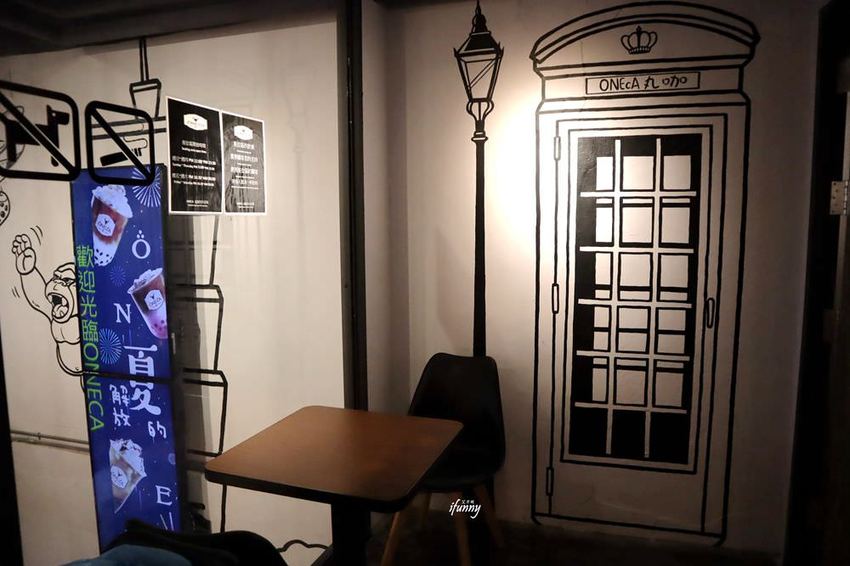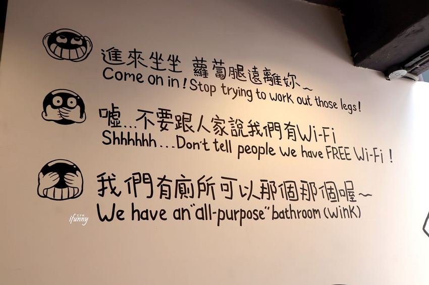 這些可愛的標語就把ONECA 丸咖有內用座位、WIFI及廁所的特色都標明出來了!