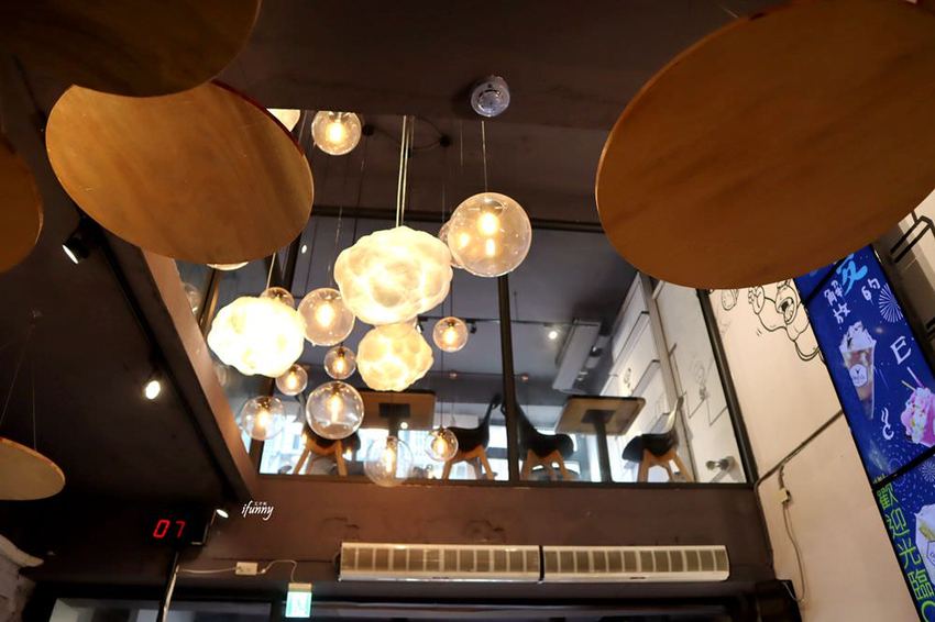配合高挑的空間,天花板垂降的雲朵及有如透明月亮般的燈具,也相當地夢幻。結合現代流行的元素,完全迎合年輕人的喜好啊!