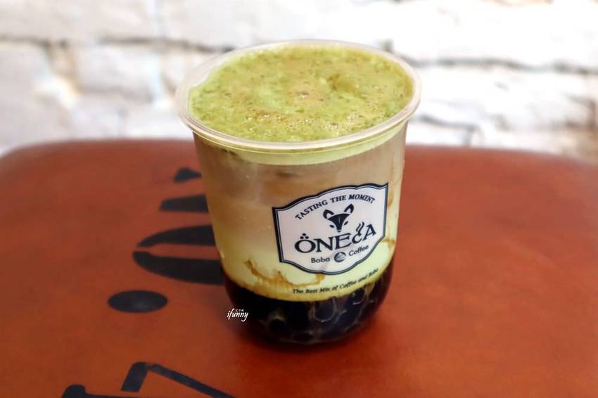 以抹茶加上咖啡,底下襯以招牌珍珠。抹茶的微苦澀及咖啡的芳香,沒想到蠻契合的,加上沽溜的珍珠,這意外地好喝呢!