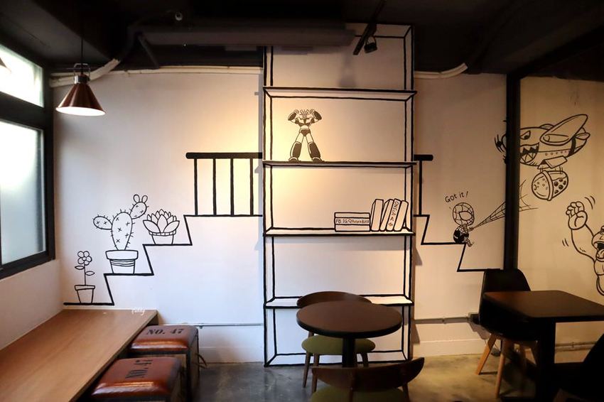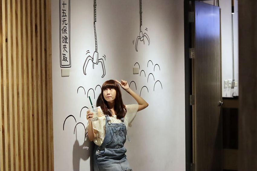 二樓的牆面塗鴨真的還是很好拍,就算飲料喝了好幾口了,還是硬要拍XDD