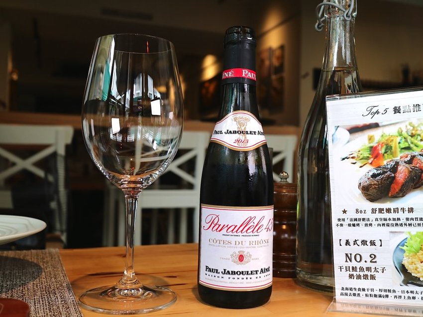 店家介紹我們 搭配這瓶《餐點酒:法國隆河丘 北緯45度》一起享用~