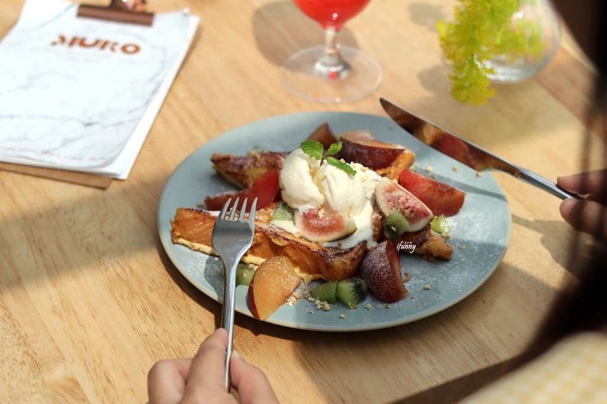 MukoBrunch木可早午餐是東門站新開幕的早午餐,門口漸層粉紅牆、室內透亮的玻璃屋都很適合拍照,是近期很受歡迎的網紅網美店。整體採光良好的設計,令光影、人與食物在餐桌上變化出不同的樣貌,令一早的能量來源充滿朝氣。大量新鮮蔬果的搭配燻鮭魚班迪尼克蛋、法式薄餅及法式炒菌菇都很不錯,尤其是有如布丁口感的法式吐司,是最受好評的料理。