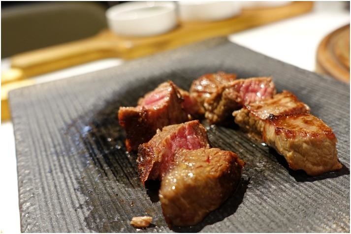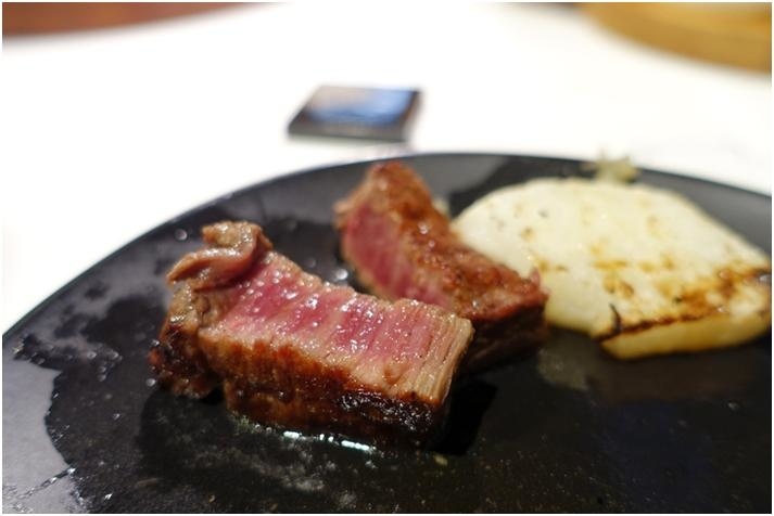 就是我們平常吃的肋眼牛排.雖然微微帶筋,不是入口即化,可是每次的咀嚼似乎都將油脂更完整的散發出來.服務生在表面看似烤熟之後將牛肉挪這棧板上靜置一會,讓表面的熱度再滲透入牛肉裡面後,切開的肉塊粉紅中帶點微微的血絲最是恰到好處.