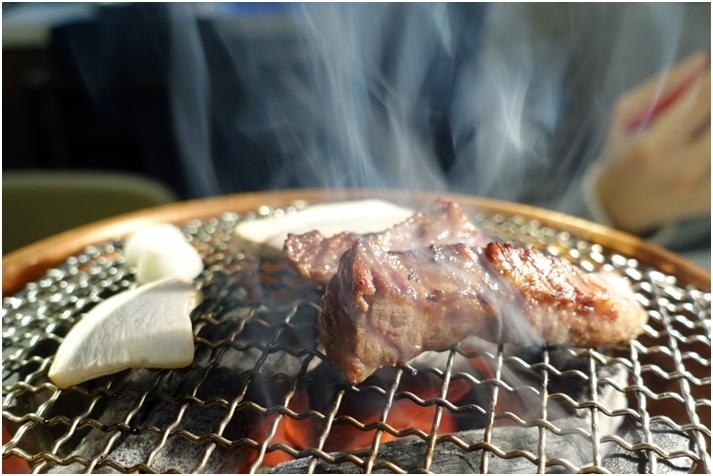 日本進口的排煙機要價15萬一台. 可以手動調整高度,因此樂軒的空間裡並不像一般燒肉店充斥得滿滿的炭火及油味.