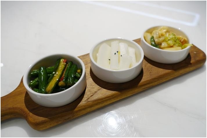 今天的季節漬物分別為小黃瓜 蘿蔔和泡菜.屬於味道比較清爽型的醃菜.