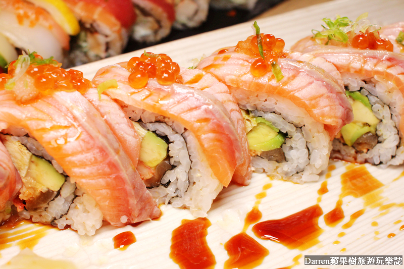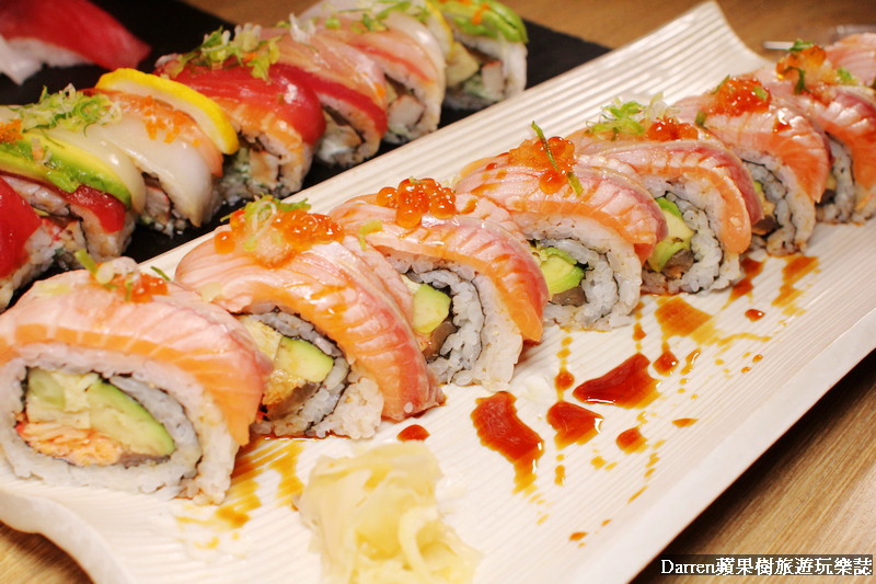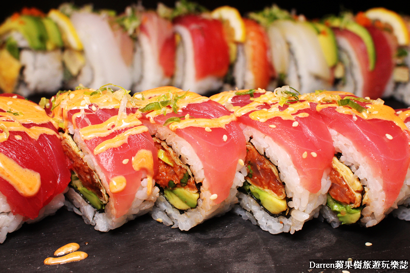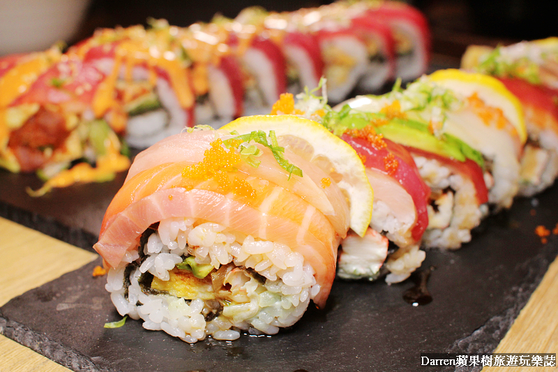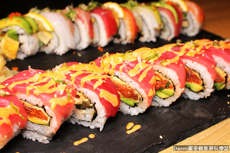 接下來又是視覺浮誇路線的創意卷壽司,彩虹卷就像一道彩虹IG味十足,上桌後讓人忍不住左拍右拍拍不停