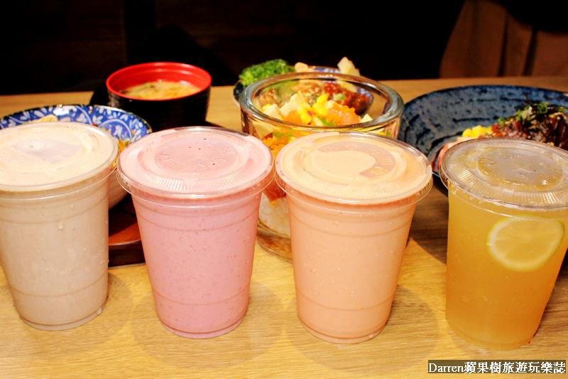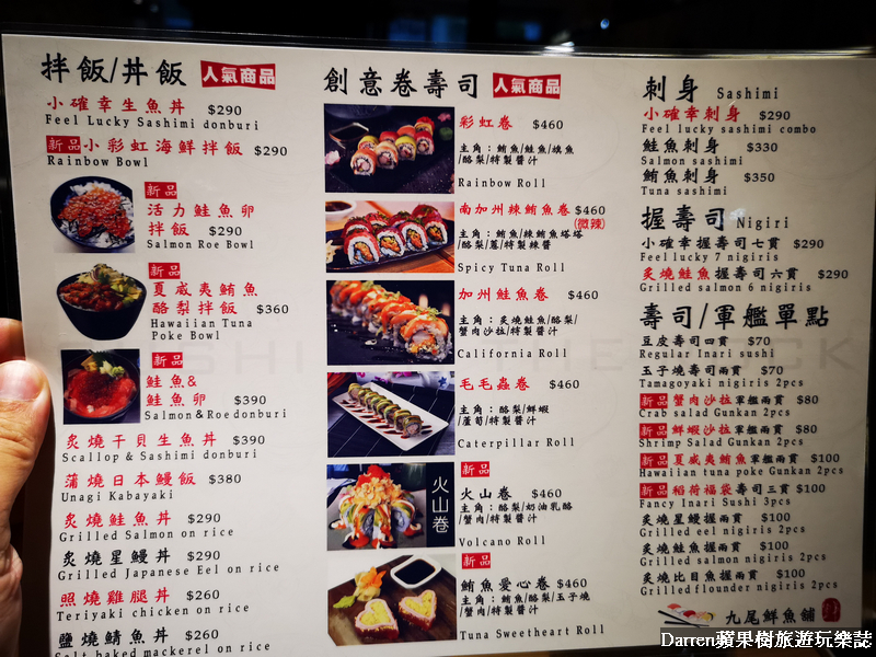 日式料理有丼飯、拌飯、創意卷壽司、刺身、握壽司、壽司、軍艦等,菜單走日韓料理統包路線選擇非常多元