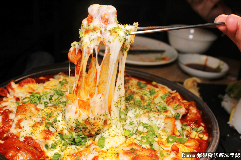 再來是曾經風靡全台的春川起司炒雞這裡也有,邪惡又迷人的起司只要夾起雞肉往上一提,起司牽絲流瀑就出現了