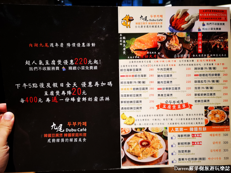 九尾韓國豆腐煲連鎖專賣店統包日式跟韓式料理,好看好吃有創意的菜色,用餐環境寬敞舒適非常適合聚會用餐