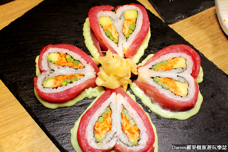 以及哇沙米和美乃滋所調和的醬汁,加上哇沙米美乃滋讓壽司吃起來有著獨特風味,愛心形狀點來放閃告白都行