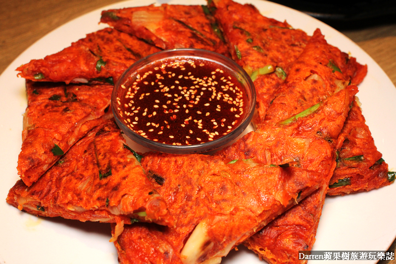 韓國經典家常料理泡菜煎餅,店家泡菜給得不少吃起來外酥內軟,沾點特製醬汁還有脆甜泡菜美味又好吃!!