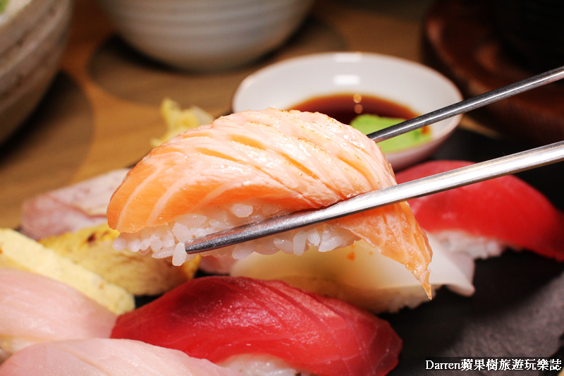 炙燒過的肥嫩鮭魚飄散著脂香,加上鮭魚卵包著蟹肉沙拉、玉子燒、酪梨等口感鮮明,花俏兼具口感很好吃