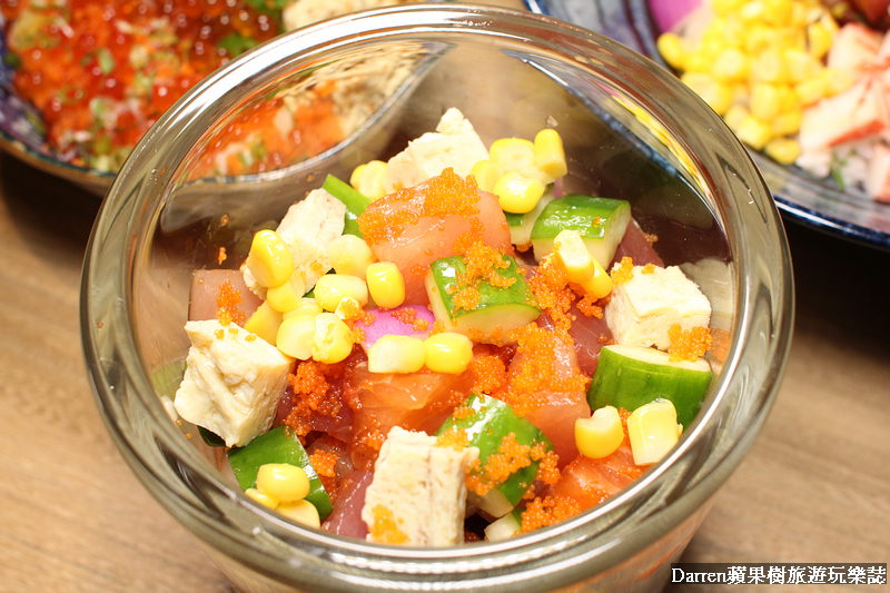 還有黑豆、玉子燒、洋蔥、玉米、蟹肉棒、番茄、小黃瓜等,看起來很大器又有點浮誇,想要拍美美IG照請服用XD