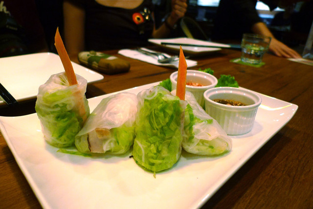 我個人喜歡醬油色的那個沾醬,紮實的生春卷吃下去竟然會有微微的飽足感....