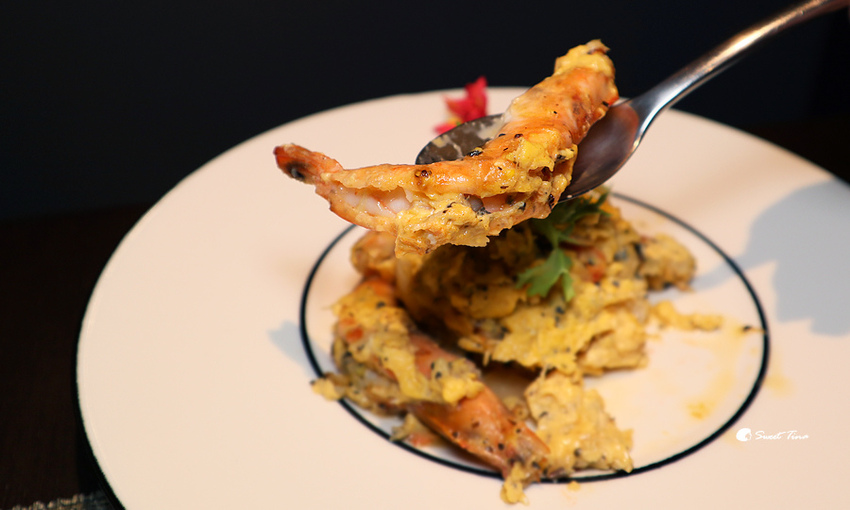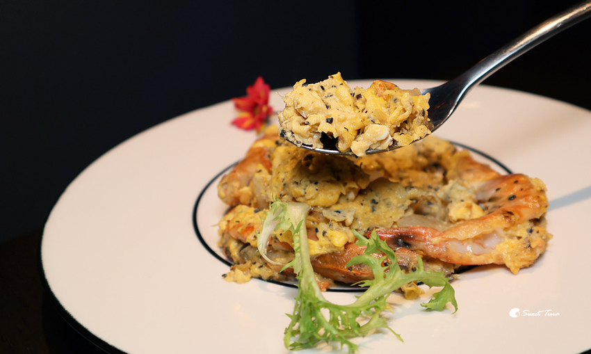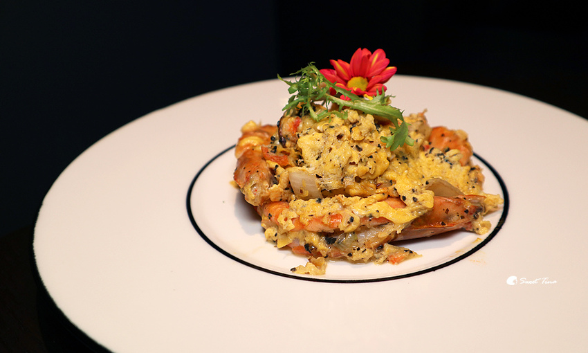 松葉蟹肉松露滑蛋鮮蝦 - 將松葉蟹肉與滑蛋及松露結合,完全是高度的美味享受,而一旁的蝦子則是選用厄瓜多無毒蝦,Q彈鮮甜的口感讓這道料理的鮮美度更為提升了呢。