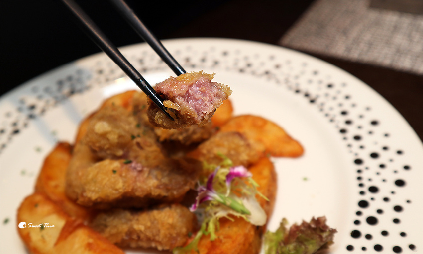 酥炸和牛條佐薯條 - 跳脫牛肉以往的料理方式,將和牛以酥炸的方式料理,不僅不失美味,咬下後還會微微的噴汁,真的是道讓人覺得驚豔的料理呢。