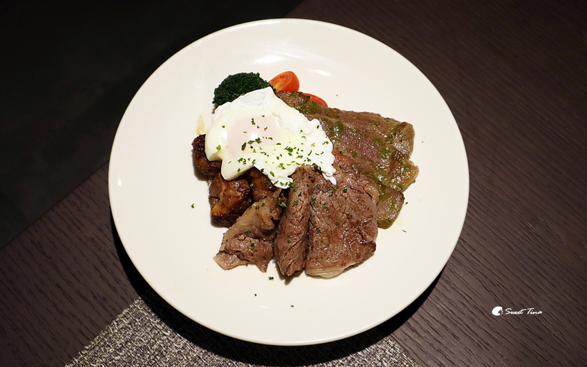 閑閑極犇丼飯 - 選用牛小排、沙朗、紐約客,一份丼飯裡可以吃到三種不同部位的牛肉,真的是相當過癮,飽足感和滿足感都有了,肉食族點這道就對了。