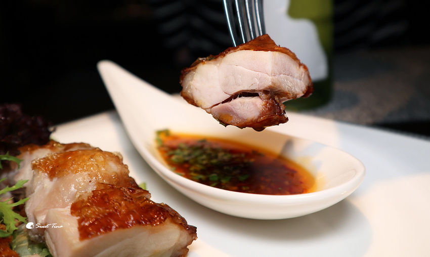 松阪豬佐金桔醬 - 松阪豬旁的金桔醬是廚師特別調配而成,我好喜歡金桔的香氣,加點蒜再沾上這醬,真的過癮。