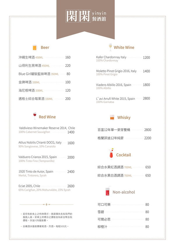 *自備酒水,每瓶開瓶服務費為$500