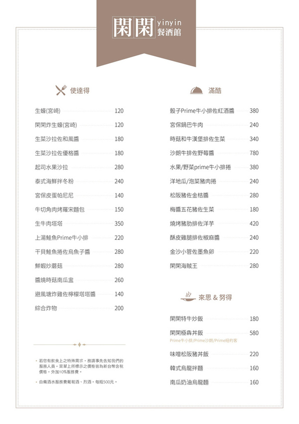 *另加10%服務費