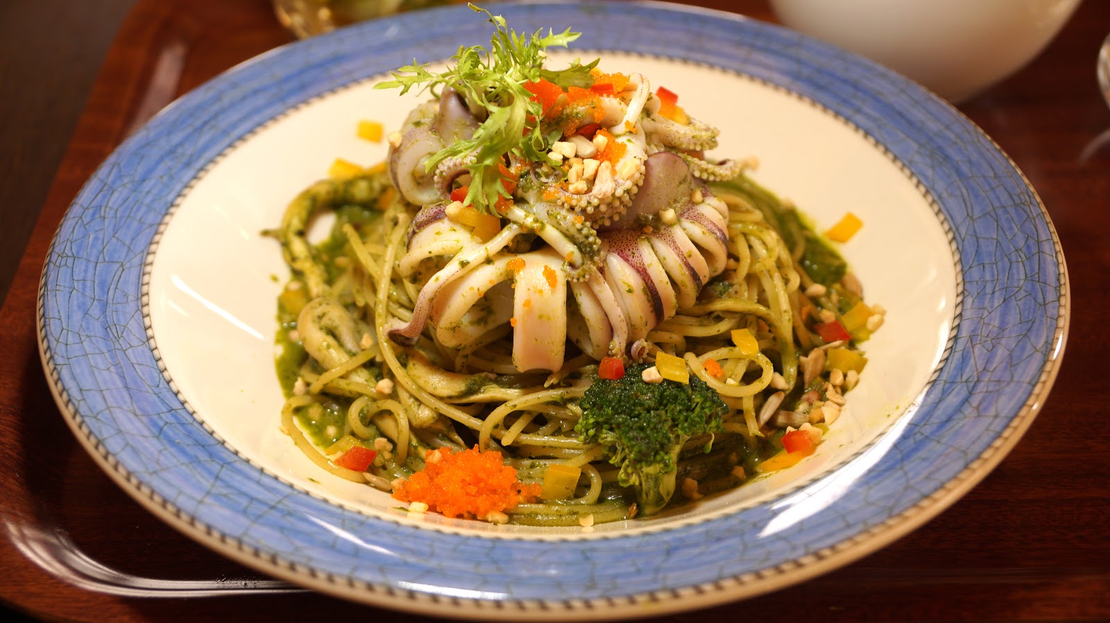 小卷青醬義大利麵上面的小捲應該是經過溫差手法的處理,保有著脆口的彈性。不是一般軟軟的感覺,上面還灑上了蝦卵去增添味道跟細微口感。麵的部分青醬羅勒的味道很香,醬汁濃稠度與份量剛好,麵也不會煮過頭有著恰好的彈性。