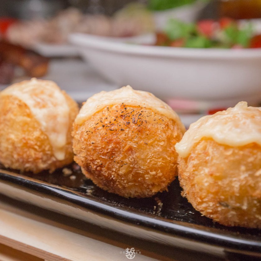 在沃爾夫堅持新鮮現作的手法,燉飯經過奶油些許炒香加入百里香與月桂葉增加香氣,最後再加昂貴的生食級帕瑪火腿,將義大利米的香氣提升至極致,成為一道大人小孩都喜歡吃的炸飯球。外脆內軟不乾,酥酥的口感像極了炸芋球。