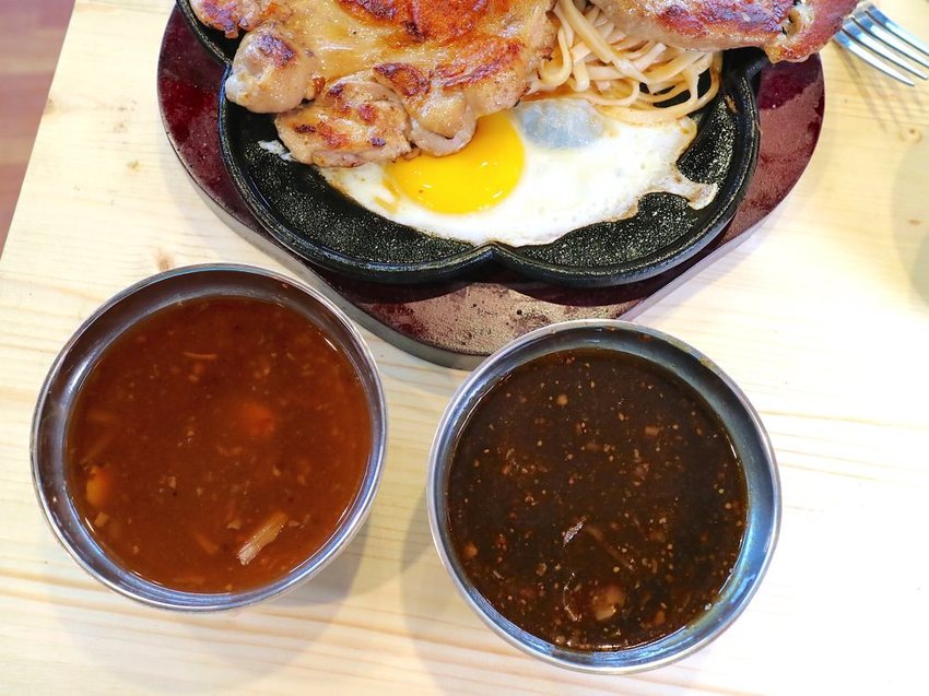 這次店家幫我們把綜合醬分開送上,分別是(黑胡椒醬&蘑菇醬)各一碗,