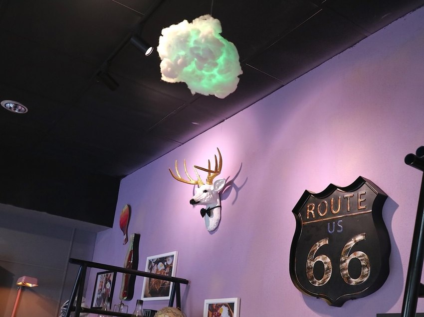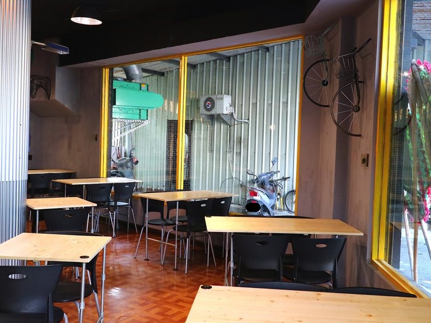 老闆裝潢滿用心的,連腳踏車都搬進店裡,而且是固定在牆上