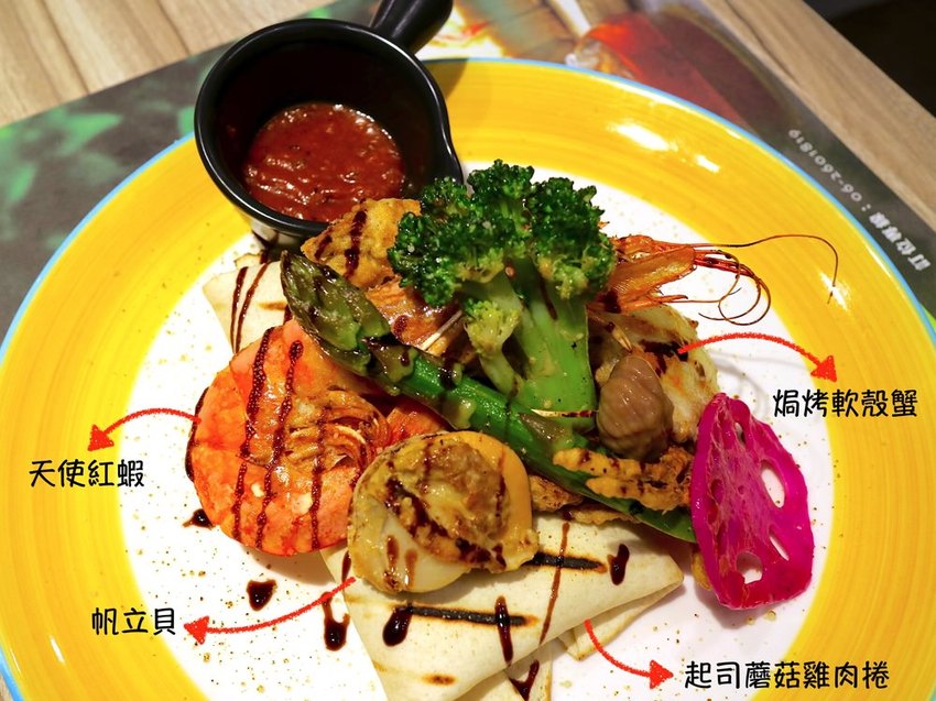 內有:起司蘑菇雞肉捲、天使紅蝦、帆立貝、焗烤軟殼蟹,還有煎烤新鮮蔬食和栗子!