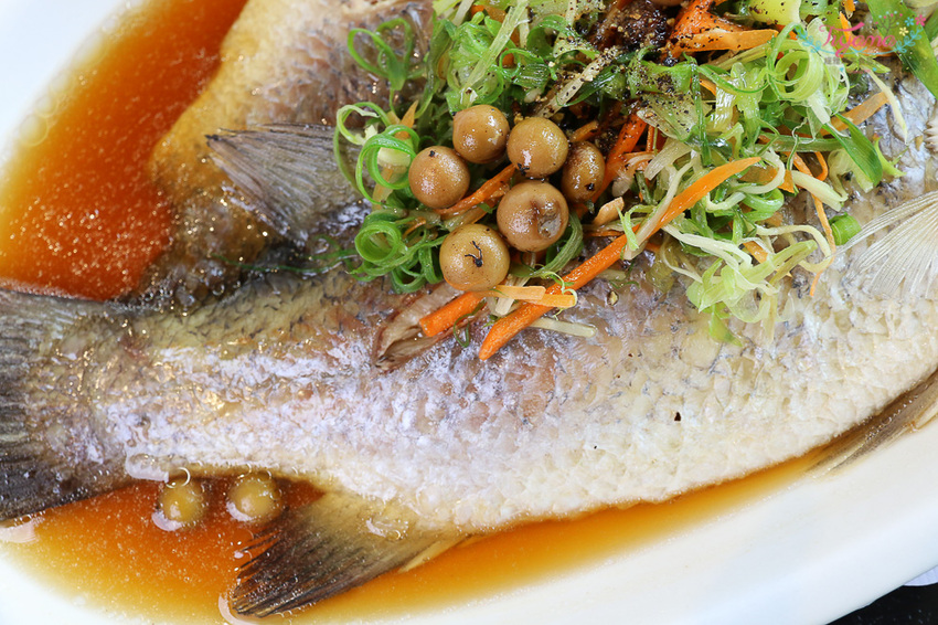 選用樹子和大量青蔥、薑絲作清蒸,鱸魚肉質鮮美細緻,樹子自然甘甜和魚肉絕配,鹹香又下飯,而且鱸魚份量大…吃得好過癮,大愛~