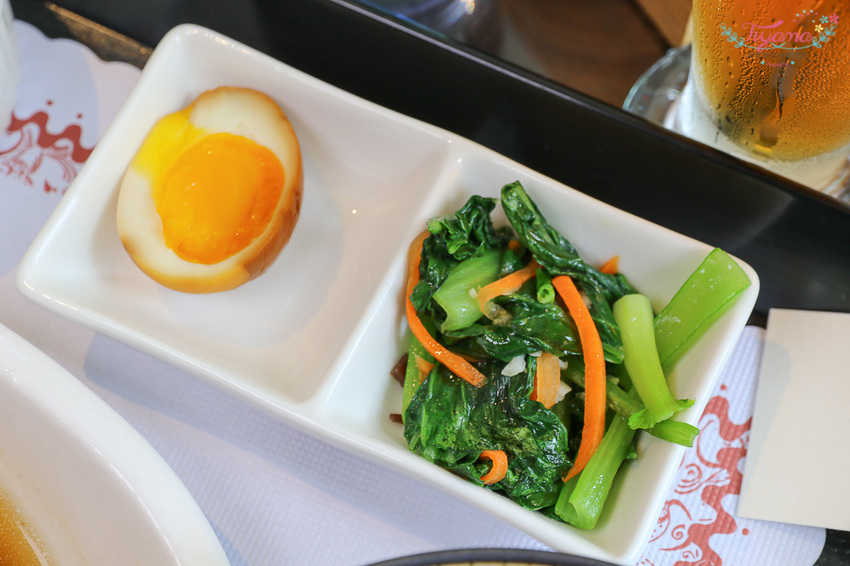 2樣小菜…分別是糖心蛋和炒青菜,再加上海鮮蒸蛋(第3樣菜),吃得到蟹肉棒、中卷,滑順鮮美…讚
