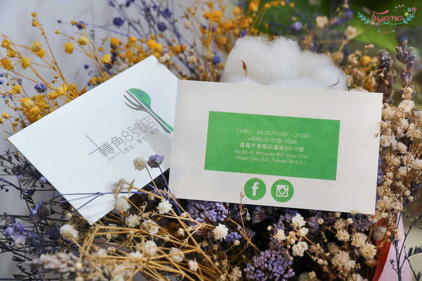 今天在嘉義民權路和民國路交叉口的轉角遇到愛…哦~不!是遇到愛店才對!!在熱鬧街道轉角的『轉角8號店』有著渡假風餐廳的氛圍,純白帶水藍加上綠意盎然的大樹,格外亮眼有朝氣…開幕不久,還不到11點就有客人在外等候,我就是其中一位