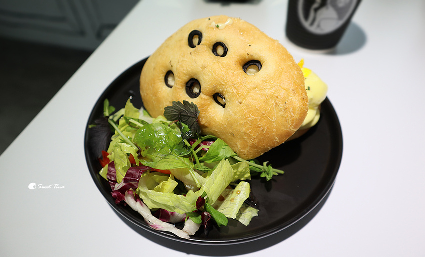 而這兒的麵包是有二種,一種是軟法,一種是佛卡夏,皆為黑犬自製,口感就是和一般的店家不一樣,超級香Q的~喜歡!