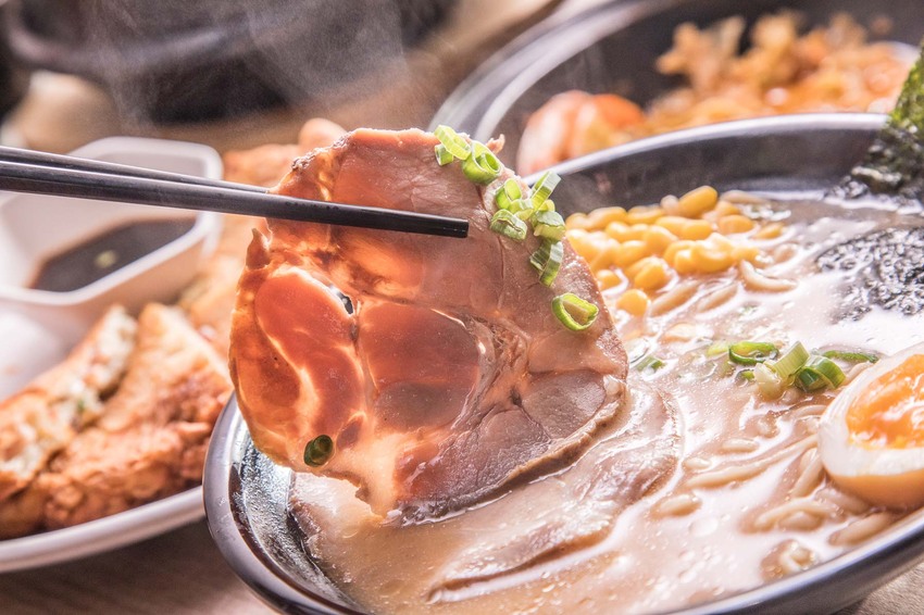 日式味增拉麵一上桌香氣四溢,兩大片厚片叉燒,味增湯頭相當濃郁,還附一顆溫泉糖心蛋呢