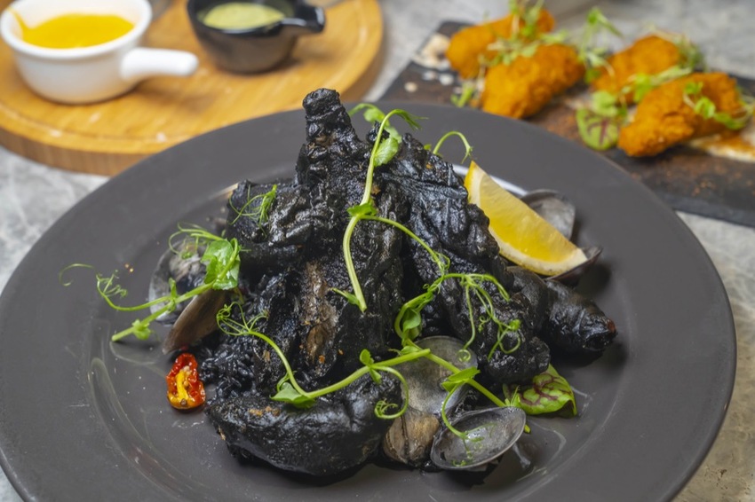 裡面還有炸鮮魚、炸牡蠣,雖然都被黑色外表給遮蔽住了,每一口都成了驚喜